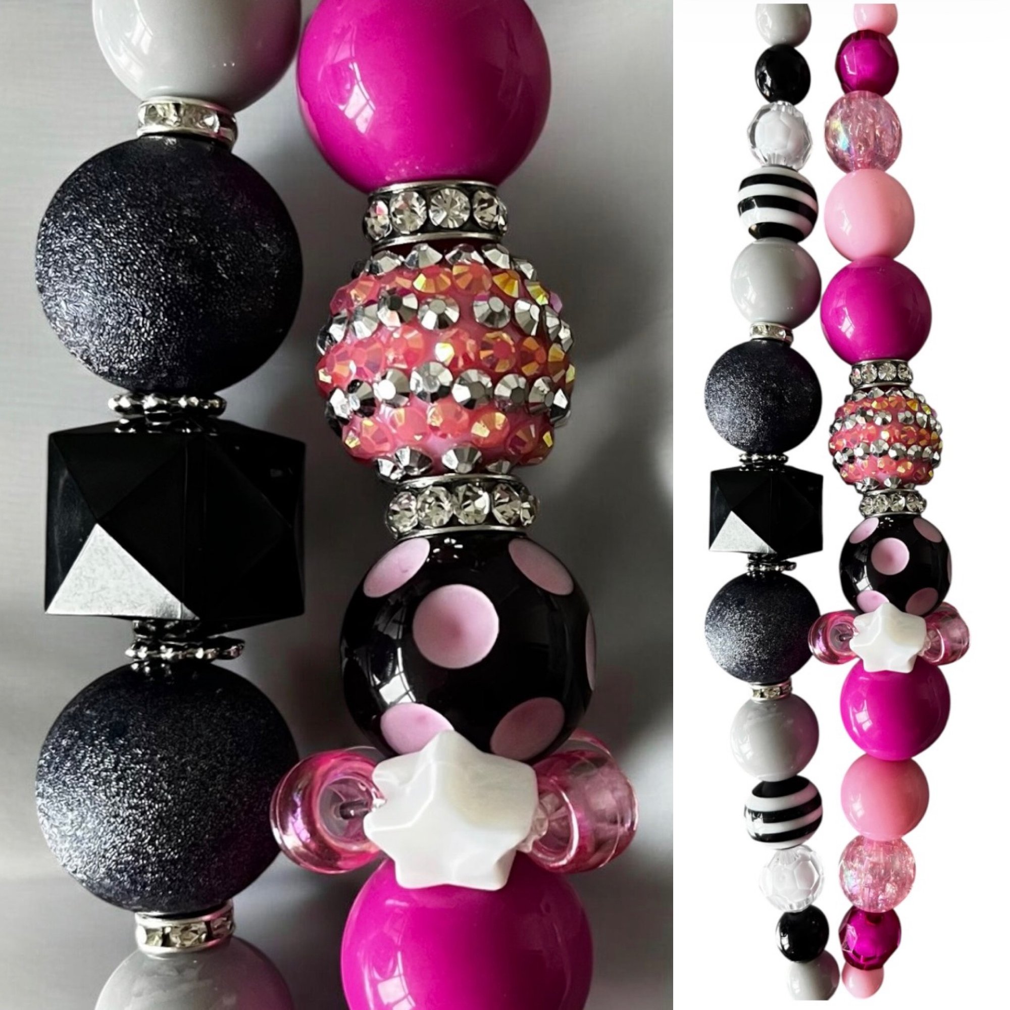Add color and creativity to your next project with this vibrant Pink and Black bead mix.